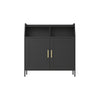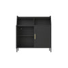 [Elegant Details]- The cabinet is made of MDF and metal, and it is divided into 5 spaces with 3 heights available to store the right amount of items accordingly. The sliding door design does not pinch your hand and reduces damage to the door from opening and closing.